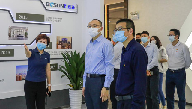 張書記一行來到深圳市百歐森環(huán)保科技股份有限公司,調(diào)研企業(yè)疫情防控和復(fù)工復(fù)產(chǎn)情況,在百歐森董事長鄔婭玲女士的陪同下,對百歐森的尖端殺菌消毒凈化技術(shù)、企業(yè)智能化自動生產(chǎn)流程以及全球市場業(yè)務(wù)模塊和銷售情況進(jìn)行了解。